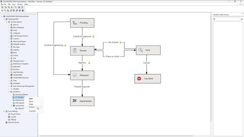 ワークフローをアーカイブするのは簡単です。ワークフローを右クリックし、メニューから「アーカイブ」を選択します。