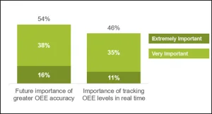- 46% of manufacturers say it is extremely/very important to track Overall Equipment Effectiveness (OEE) levels in real-time on a per machine basis to improve production line efficiency.
