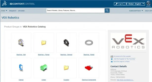 VEX Robotics is a certified supplier on 3DContentCentral.com providing more robot parts for the competition.