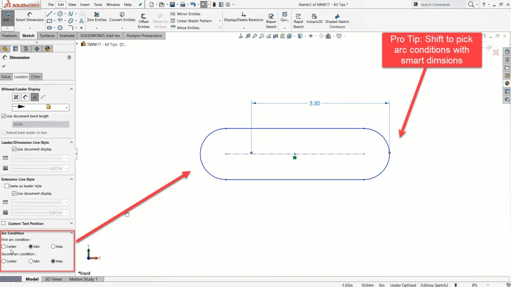 12. Easily Add a Dimension to Tangency with the Shift Key