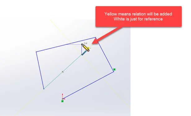 Here’s one of the best examples, which appears when sketching. A yellow relation means it will be added as a relation, while white means it’s just for a visual aid.
