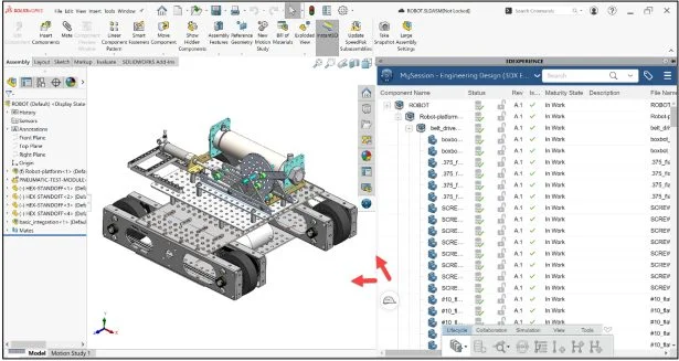 Lock the part. Modify the SOLIDWORKS part. Save the modified SOLIDWORKS part to the 3DEXPERIENCE platform. Create a New Revision, Unlock the part and view the maturity state of the part. Save the model to your Collaborative space in the MySession panel.