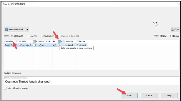 Check the New Revision box. Note: Locked By, displays the first and last name of the person that has locked the corresponding family on the 3DEXPERIENCE platform.