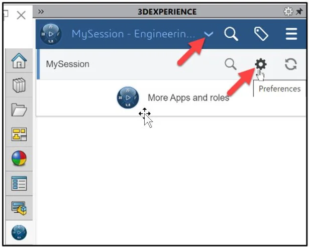 View Preferences in the MySession panel for the model. Edit Preferences. Note: If you have multiple Credentials and Collaborative spaces, you can modify and save the model to a new space. In this lesson, just view the procedure.