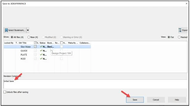 Upload and save the files to the 3DEXPERIENCE platform.One of the best simple practices for SOLIDWORKS data is to create Bookmarks upon the initial save to the 3DEXPERIENCE platform. Choosing the “Save Active Window” provides the user the choice of existing Bookmark folders or to create a new Bookmark to contain the file references.