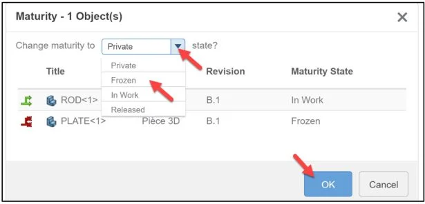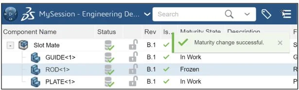 Change Maturity state of a component, assembly and several components with different maturity status. Maturity states provide information about the content’s completion stage and its validity.