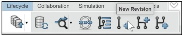 Click Revisions from the Lifecycle tab in the Action bar. The Revisions dialog box is displayed. Note: You can have different revisions at different Maturity States.