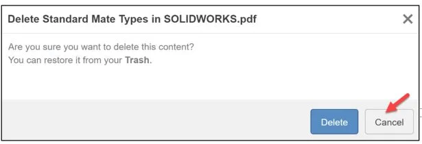 The Delete dialog box is displayed. Note: You can restore an item from Trash.