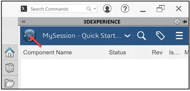 Click the 3DEXPERIENCE icon in the Task Pane. The MySession panel is displayed. This displays the two-way communication between SOLIDWORKS running on your desktop and the 3DEXPERIENCE platform running in the cloud, a single modeling environment.