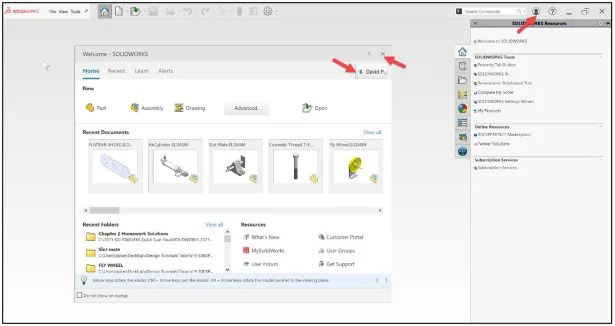 Close the Welcome – SOLIDWORKS dialog box.