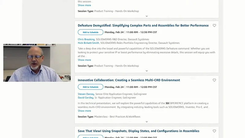 Bruce and Chris then provide a preview of the types of technical sessions that will be offered for both SOLIDWORKS as well as the Cloud Apps, promising hundreds of courses with invaluable information for everyone who attends.