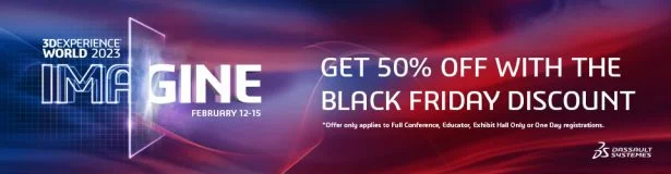 3DEXPERIENCE World is right around the corner, and we want everyone to attend! Join us FEB 12-15 in Nashville, TN.  Don’t delay, register today to take advantage of our extended Black Friday promotion. Get 50% off any of the following registration packages: Full Conference, Educator, Exhibit Hall Only or One Day Pass! Use the code BLACKFRIDAY50OFF valid from NOV 22, 2022 at 12AM EST through midnight EST NOV 26, 2022.
