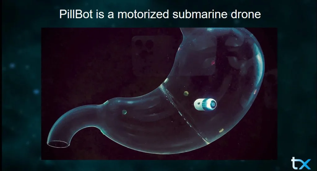 The company is now developing PillBot 2, which will be even smaller. “No hospital, no drugs, no wait.”