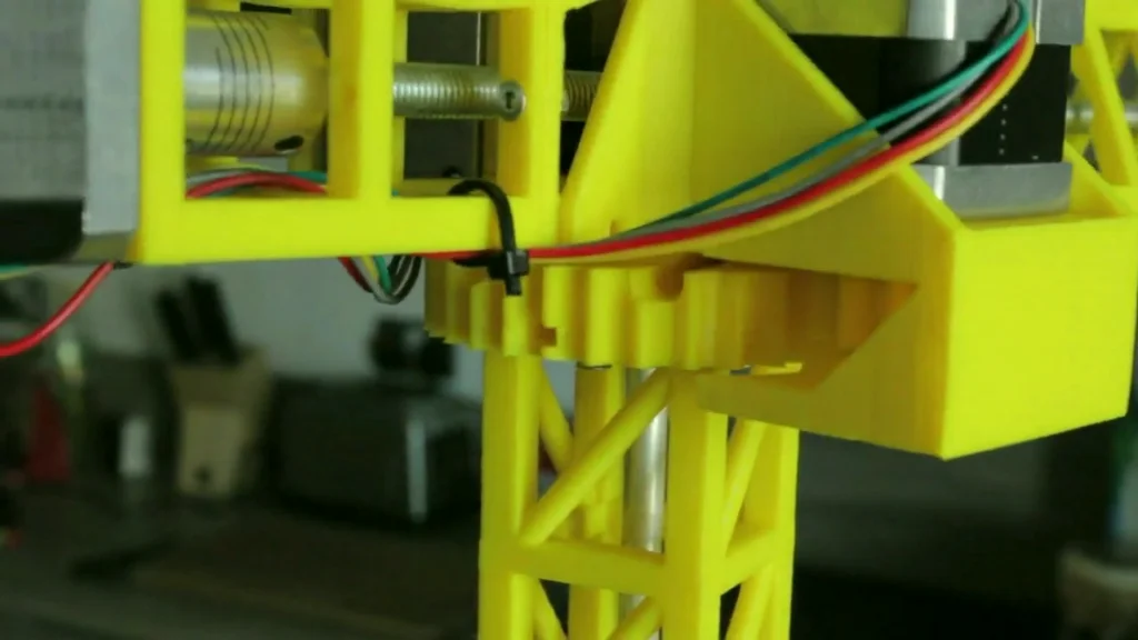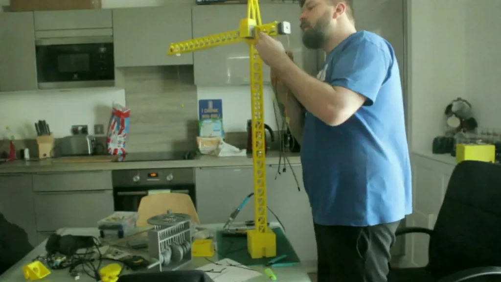We added the assets of all the motors in so we could design around them. We built it from the base up, working out how we were going to assemble as we build the model. The whole crane was printed and assembled using nuts and bolts only. No glue has been used to hold the crane together.