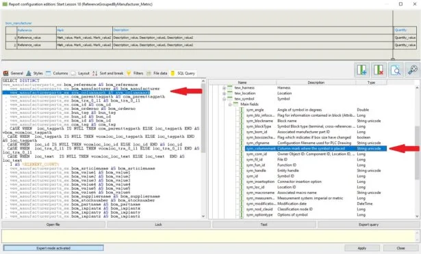 In the right panel, locate the data variable you wish to reference, in this case we are looking for sym_columnmark (Column number where the component symbol is placed). Once you have located the required name, it’s as simple as following the same syntax as the previous line – you can just copy and paste an existing line (including the comma) and change the text to match the variable we determined on the right panel – see example below.