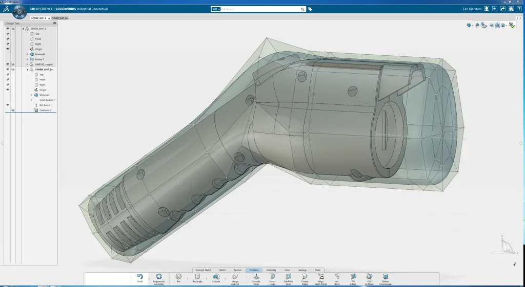 Öjerstam was on the lookout for a sub-D, free-form modeling application that would better integrate with SOLIDWORKS software, the standard CAD software used by many of his clients. He needed a free-form modeling solution that would allow him to more easily and quickly go back and forth between conceptual ideas and production geometry, to refine design concepts and efficiently handle design modifications.