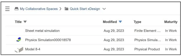 The below Simulation items are saved to my Collaborative space called Quick Start xDesign on the platform.