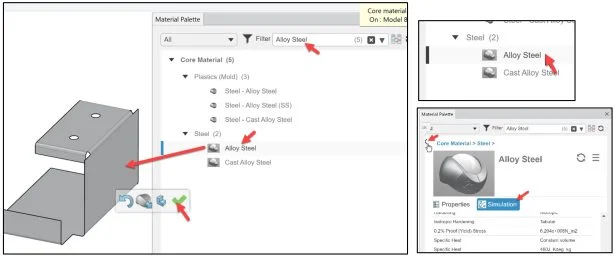 Enter Alloy Steel in the Filter Search box. View the results. Your material library maybe different than illustrated.
