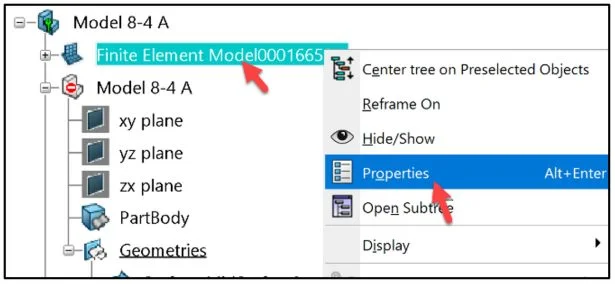 Right-click the default Simulation title (Finite Element Model#######).