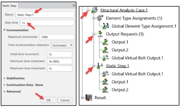 Click OK from the Static Step dialog box.