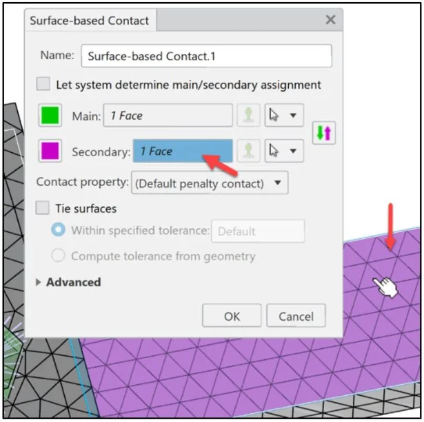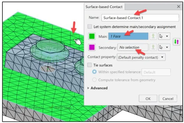 Create a Surface-Based contact. Surface-Based contact defines the interaction behavior between two discrete surface regions in the model.