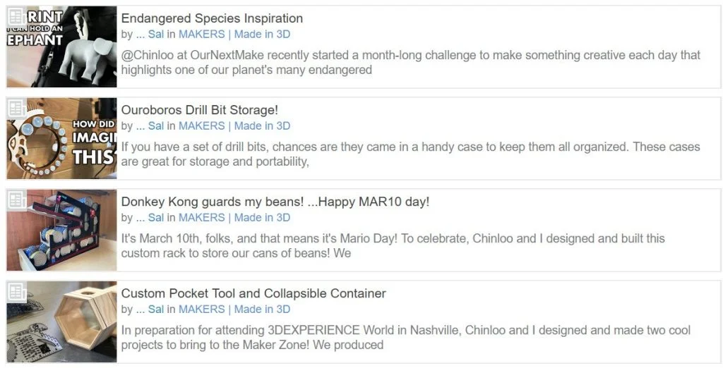 You can see all of their posts in the MAKERS | Made in 3D community in the Dassault Systèmes 3DSwym environment (log-in required).  Each post goes into detail as to how they leveraged the SOLIDWORKS and Makers apps to create their designs as well as various CAD models on display for you to check out by manipulating in 3D.