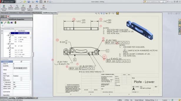 SolidWorks Inspection is a simple and intuitive application that reduces the time needed to create inspection documentation by up to 90%, and virtually eliminates errors inherent to any manual process, thus improving quality and reducing time to market. SolidWorks Inspection lets you