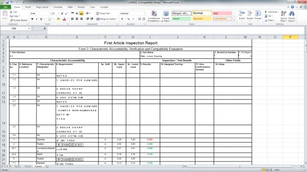 - Export inspection reports to Excel spreadsheets using standard templates such as AS9102 or PPAP forms.