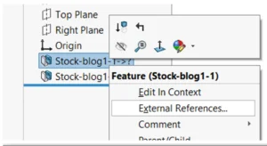 {->}  Feature contains a sketch with external references