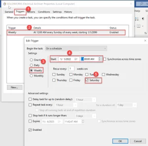Next, visit the Triggers tab and set the frequency and timing for the archiver. It’s recommended to schedule the task during off-hours to avoid interrupting your user base. Be sure to enable the task when setting it up. This is one of the main benefits of using the Task Scheduler for automatic archiving.