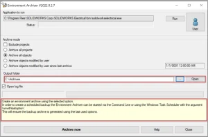 C:Program FilesSOLIDWORKS CorpSOLIDWORKS ElectricalbinEwEnvironmentArchiverewenvironmentarchiver.exe