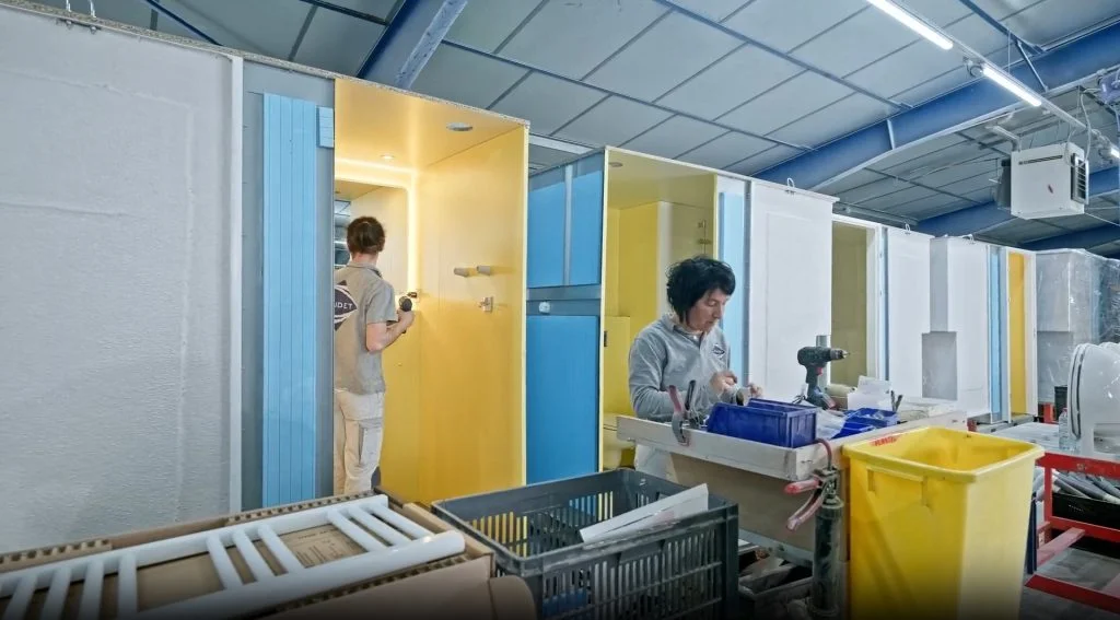 “Today, this prefab bathroom solution allows us to deliver a fully finished factory product to a work site,” says BAUDET Executive Vice President Laurent Roué. BAUDET builds 6,000 prefab bathrooms per year off-site in a controlled factory environment, which enables better quality control, faster installs, and less disruption on job sites. Prefab bathrooms typically save time, cut costs, and simplify the entire construction process.