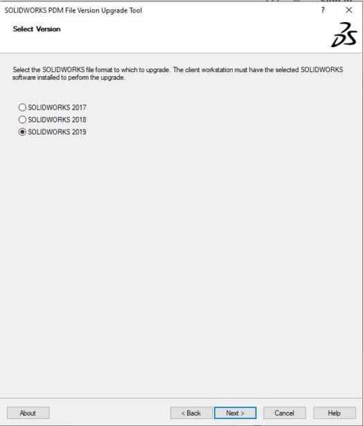 It is available as a separate installation in the SOLIDWORKS installation media folder “…SWPDMClientSupportFile Version Upgrade”. Run the file “File Version Upgrade.exe” and follow the steps accordingly to finish the installation.
