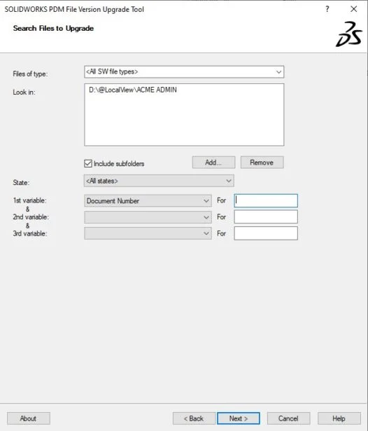 After this you will have the options to search for and select the preferred SOLIDWORKS files for the upgrade.