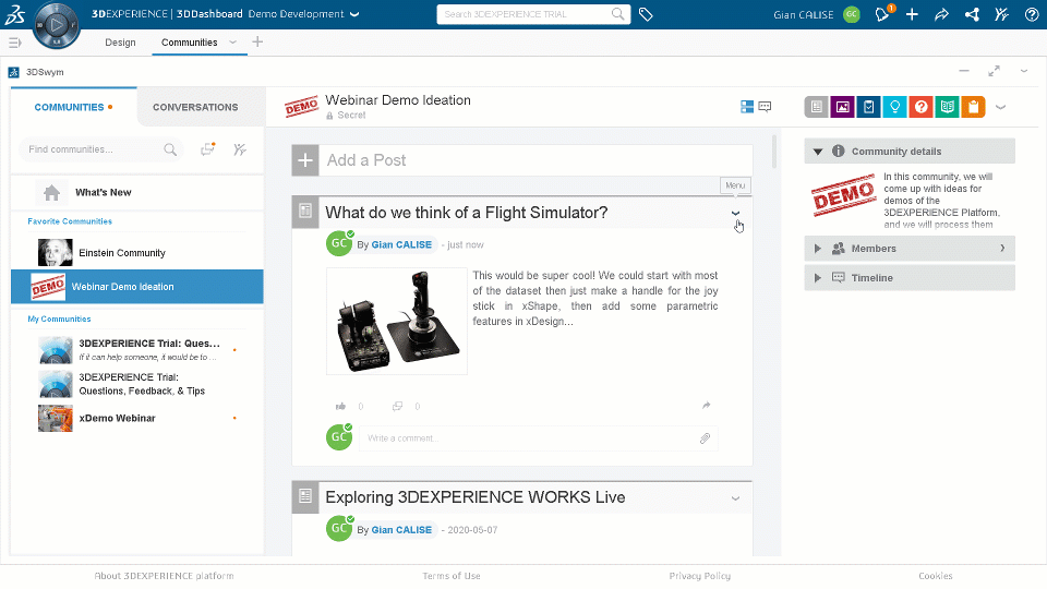3D Swym is the main collaboration hub on the 3DEXPERIENCE platform, a place where users can create communities and share ideas. There are many ways to communicate and collaborate with coworkers, suppliers, or anyone considered a stakeholder in your product development process. One of the ways to share on 3D Swym is posting an idea to your community. Then, when you filter your posts and see just ideas, you will see the ideas pipeline, also known as the ideas funnel.