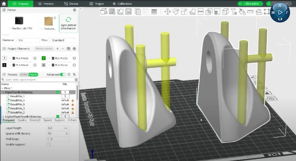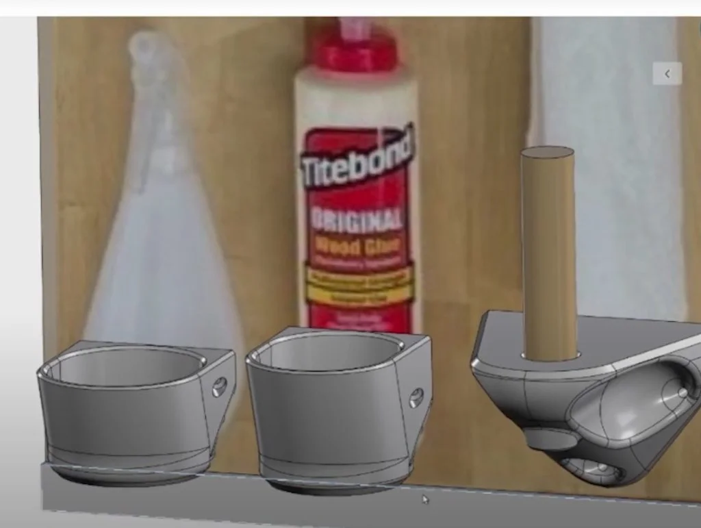 It tilted forward for easier access and included a base opening that allowed the bottle to be stored upside down, if needed. As they reviewed it, the team pointed out areas for improvement in strength, reducing print time, and aligning the screw holes with denser parts of the print using modifiers in the slicer.