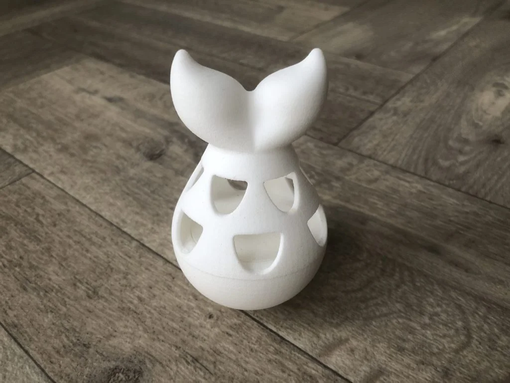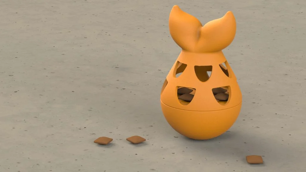The final model has its two separate bodies saved to separate parts. These parts can then be saved as STL files for 3D printing. In this tutorial an unpolished Polyamide (SLS) was used to 3D print the toy, it was then put to the test by my two cats Loki and Bramley. As mentioned in the tutorial, the toy could be made more difficult to win the treats by making the scale holes smaller, higher up the top piece or less frequent. You can download the STL files for this model from this link here. . Just be aware of the material you are using to print.