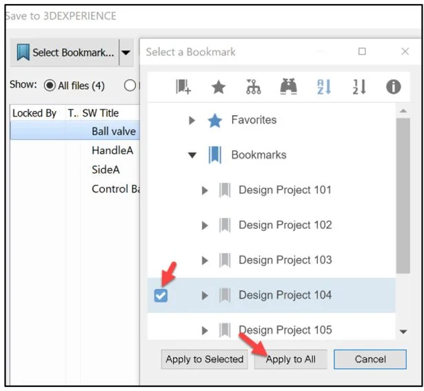 In the below example, I selected Design Project 104 as my bookmark.