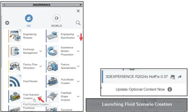 Launch the Fluid Scenario Creation App. If this is your first time using a 3DEXPERIENCE Simulation App, or an update is available, download the needed App information on your computer. It is recommend to restart your SOLIDWORKS session.