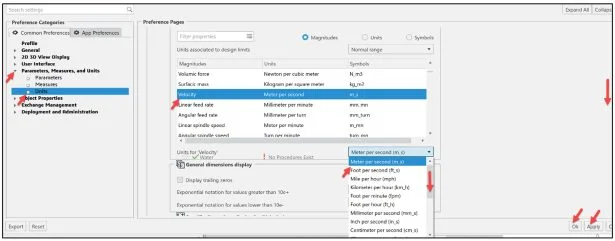 Note: To modify the default unit, drag the inside and outside slider downward to locate the magnitude, select the magnitude, select the new unit from the drop-down menu as illustrated.