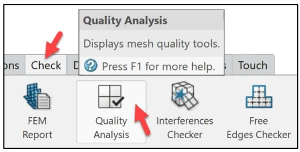 Click Quality Analysis from the Check tab in the Action Bar.