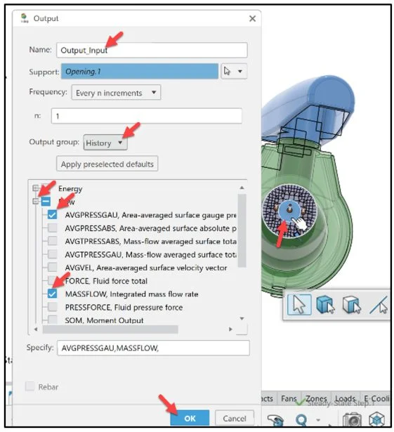 Select History from the Output group drop-down menu. Note: You can create two types of sensors to display different types of data: Field sensors and History sensors. Depending on the analysis case type you simulate, some Apps automatically create a set of field and history sensors by default. Default sensors streamline your workflow so you can quicly analyze your simulation results.