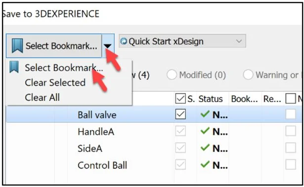 Save the assembly and the reference components. Use your existing Collaborative space. Use an existing Bookmark. Note: If needed review 3DEXPERIENCE Works Lesson 3: SOLIDWORKS Bookmarks, Share and Delete. Use Bookmarks (links) to delete entire groups of data or just a single file. For assemblies within the Bookmark folder, there is an option to delete the entire structure of the assembly and all reference components.