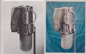 The special Geneses Rock Bag, was designed with special knitted padding to protect special delicate rocks during the trip back to earth. Charlie designed all of these bags. The drafting board and slide rule were the main tools for this work.