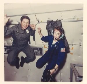 During one day’s work, the KC-135 would climb to about 25,000 to 35,000 feet, and then tip over to experience the micro-gravity; and repeat this parabolic flight procedure 40 times. “For about 26 seconds we experienced Zero gravity. Linda was second in command of the Zero G program in Houston Texas.