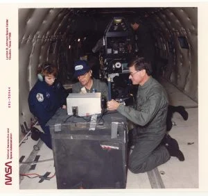 Charlie, Joe and Linda in the Zero Gravity Boeing KC-135 air craft doing the first Zero Gravity experiments