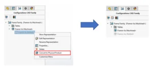 There will still be use cases where additional configurations are required to aid design in SOLIDWORKS. These should be created as Representation configurations so that additional Physical Products are not created.