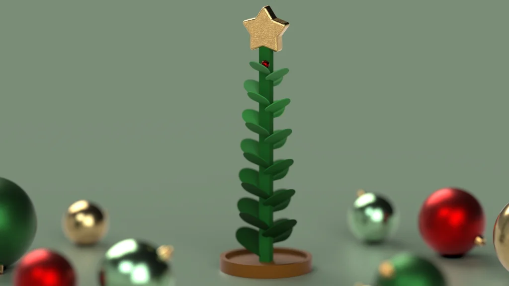 You will see at the result of my motion study at end of the tutorial, it was exported and rendered into SOLIDWORKS Visualize. I did add some extra models including some festive baubles, and added the depth of field to get the focused camera shot of the tree.