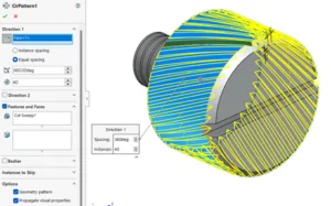 Now that all the hard work is done, and it’s time to take advantage of pattern features. Using a Linear Pattern, repeat this feature as many times as needed to complete the first direction of knurling, specifying the spacing and instances as required.