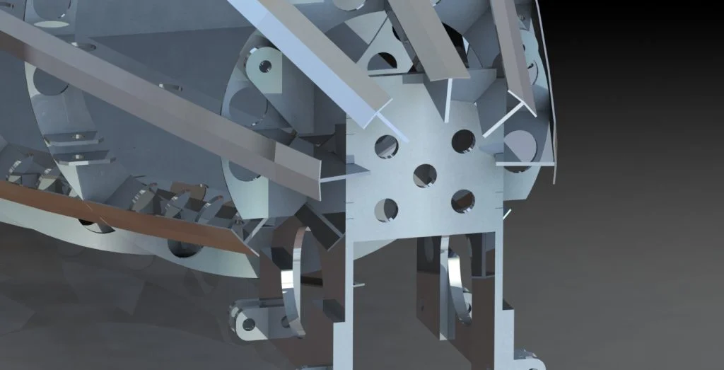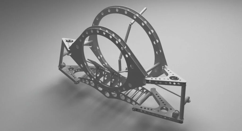 I used Paul’s models as reference for the chassis design. The finished design looks similar to these models. A lot of additional features were added to the components to make assembling and welding the chassis easier by using self fixturing components. Here are images of the SOLIDWORKS assembly model of the chassis.